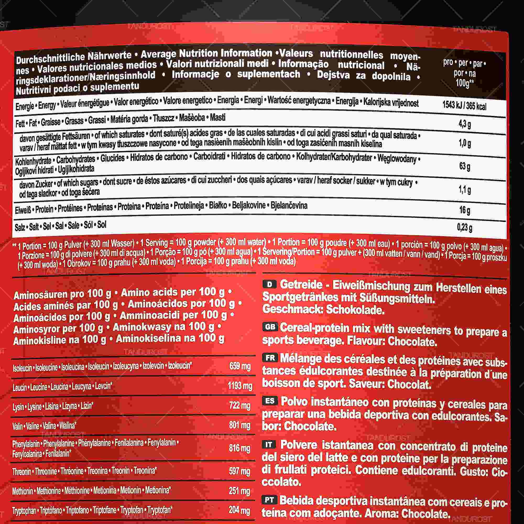 ترکیب درصد | 63 درصد کربوهیدرات، 16 درصد پروتئین وی |