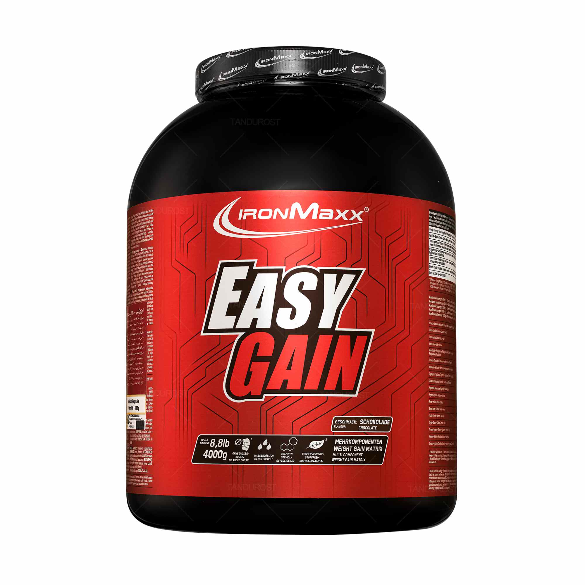 ایزی گین آیرون مکس آلمان که تحت لیسانس این شرکت در داخل کشور بسته بندی می گردد یک مکمل گینر یا افزایش با کیفیت ساخت بسیار بالایی می باشد. ایزی گین آیرون مکس گینری است با 16 درصد مخلوطی از پروتئین وی کنسانتره و ایزوله و 63 درصد کربوهیدرات، که همین مقدار پروتئین وی ایزوله موجود در آن ارزش غذایی این گینر را بالا برده و آن را جزو گینرهایی با مقادیر کافی و کامل از اسید های آمینه ضروری و گلوتامین قرار می دهد. ایزی گین آیرون مکس آلمان به صورت پودر طعم دار و در بسته بندی های 4 کیلوگرمی عرضه می گردد. هر پیمانه این مکمل ورزشی 25 گرم بوده که حاوی: 16 گرم کربوهیدرات، 4 گرم پروتئین وی، 91 کالری و چربی کل 1 گرم می باشد. مهمترین نکته ای که ایزی گین آیرون مکس را از بقیه گینرها متمایز می کند، مقادیر بسیار کم شکر و چربی این مکمل ورزشی است به طوری که شکر این گینر نزدیک صفر گرم در هر پیمانه و چربی آن نیز بسیار اندک می باشد.