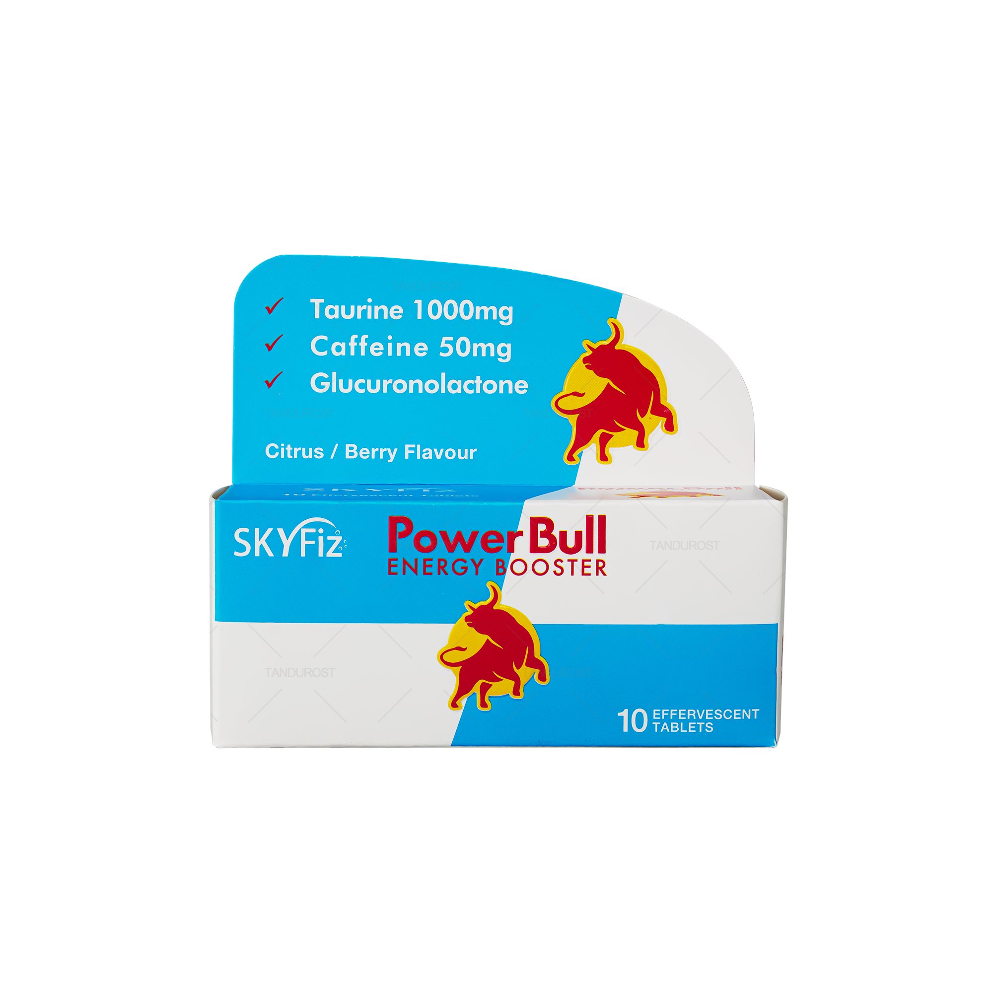 قرص جوشان انرژی زا پاور بول اسکای فیز از شرکت ویت اسکای انگلستان که تحت لیسانس این شرکت در داخل کشور بسته بندی می گردد در بین قرص های جوشان انرژی زای موجود، از بالاترین کیفیت ساخت برخوردار بوده و تاثیر آن مخصوصا برای ورزشکاران بسیار محسوس می باشد. قرص جوشان انرژی زا پاور بول اسکای فیز تمام آنچه برای افزایش انرژی و متابولیسم بدن و عوامل نگهدارنده عضلات برای شرایط تمرینی سخت را در خود گنجانده است. قرص جوشان انرژی زا پاور بول اسکای فیز در بسته بندی های 10 عددی عرضه شده که هر قرص این مکمل انرژی زا حاوی 1000 میلی گرم تائورین جهت ریکاوری و نگهدارنده عضلات به حالت تمرینی و در نهایت افزایش بازده تمرینی، 50 میلی گرم کافئین جهت افزایش متابولیسم بدن و افزایش انرژی عضلات، 100میلی گرم جینسینگ جهت افزایش تمرکز تمرینی و افزایش استقامت عضلات، ویتامین های گروه B جهت رفع گرفتگی عضلانی و در نهایت افزایش کارایی عضلانی و در نهایت 6 میکروگرم محصول تجزیه گلوکز در کبد با نام گلوکورونولاکتون، جهت کاهش ذخیره گلیکوژنی در عضلات که باعث افزایش توانایی و استقامت عضلانی می شود را دارا می باشد.
