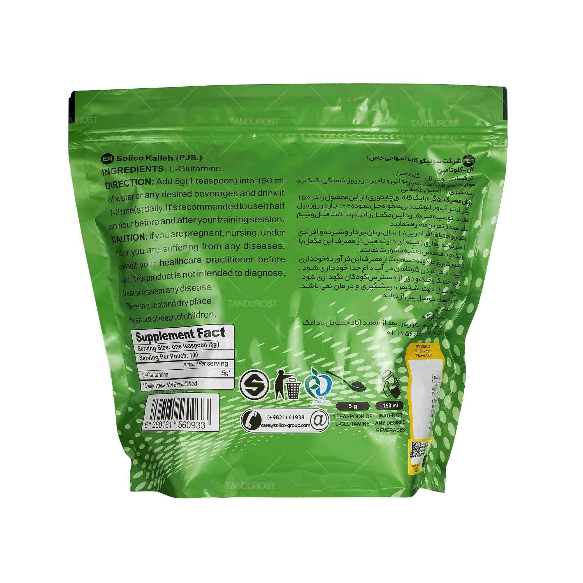 | ارزش غذایی هر پیمانه | 5 گرم گلوتامین خالص |