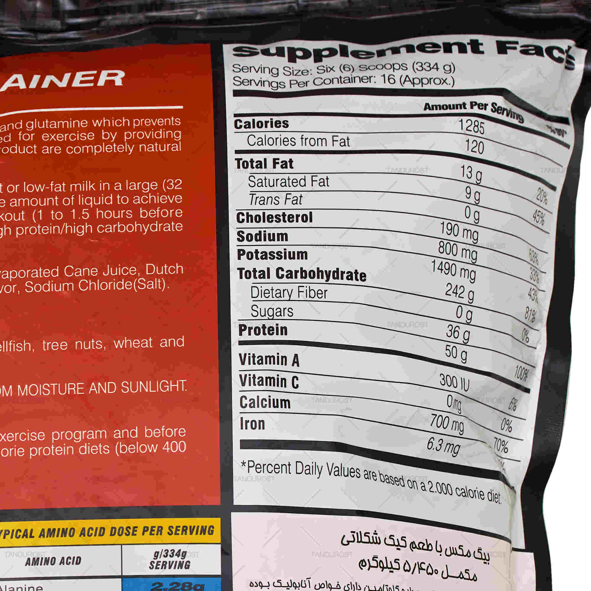 | ترکیب درصد | 72 درصد کربوهیدرات، 15 درصد پروتئین وی |