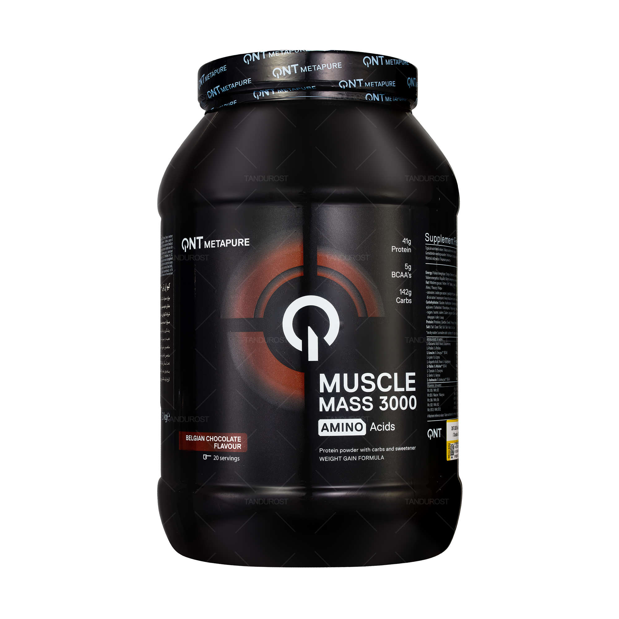 گینر ماسل مس 3000 کیو ان تی بلژیک یک مکمل بسیار با کیفیت جهت افزایش وزن وحجم عضلات می باشد.گینر ماسل مس 3000 کیو ان تی با داشتن 76 درصد کربوهیدرات از نوع مالتودکسترین و دکستروز به خوبی در کوتاهترین زمان ممکن وزن ایده آلی به ورزشکار داده و همچنین با داشتن 14 درصد پروتئین از جنس وی کنسانتره به خوبی در کنار افزایش وزن به عضله سازی ورزشکاران نیز کمک می کند. گینرماسل مس 3000 کیو ان تی در دو بسته بندی 2 و3 و 4.5 کیلوگرمی بسته بندی می گردد. ماسل مس 3000 کیو ان تی حاوی پیمانه 50 گرمی بوده که هر پیمانه آن شامل: 38 گرم کربوهیدرات، 7 گرم پروتئین، 190 کالری و چربی کل 1 گرم می باشد.